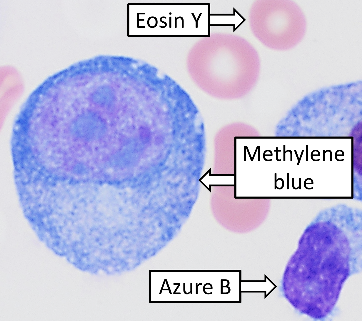 - آزور B: این یک رنگ بازی است که هسته سلول ها و گرانول های بازی را رنگ آمیزی می کند.